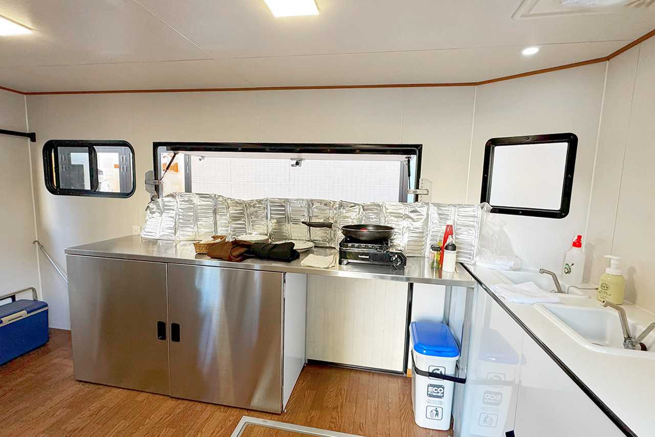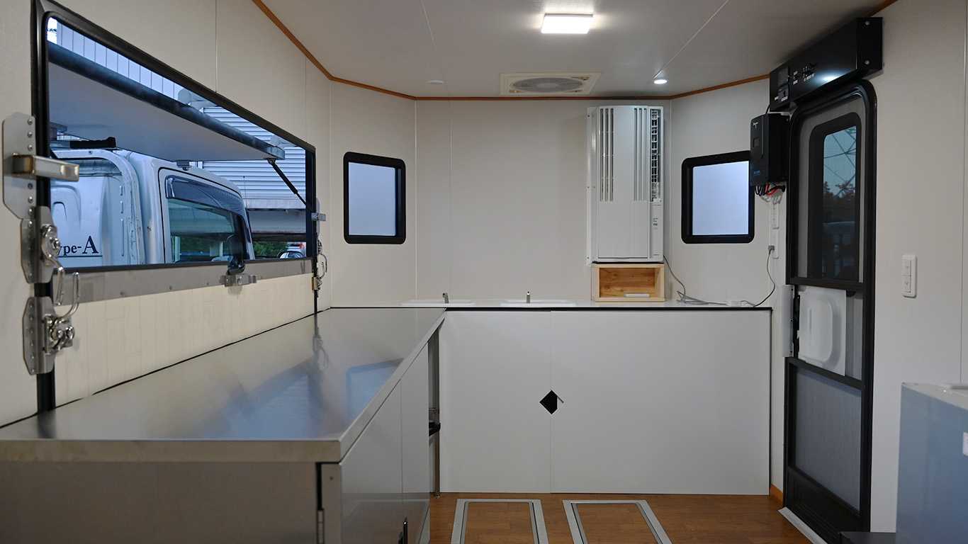上下分離構造の扉は、キッチンカーや移動販売などのショップ運営にもぴったり。